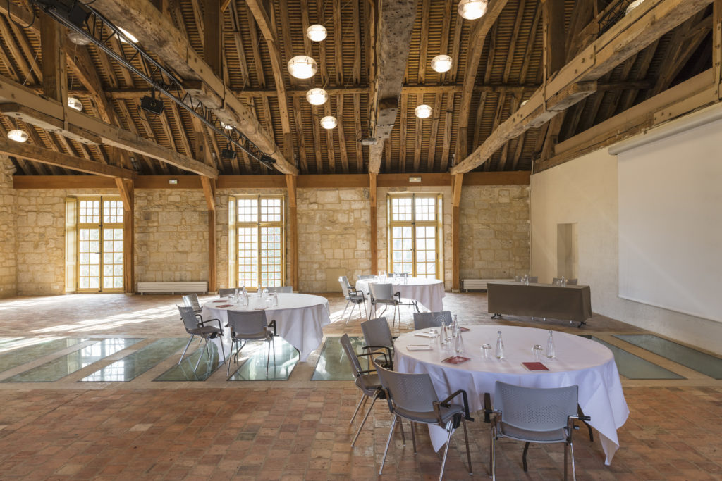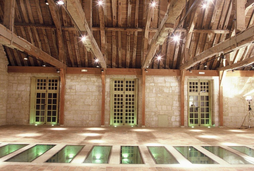 The many 13th century wooden beams re-used in the current frame reveal the exceptional roof of this room, which had two wood-panelled vaults resting in the centre of the room. The technically complex framed structure was required because it was difficult to build a wooden vault with a span of more than 16 metres.